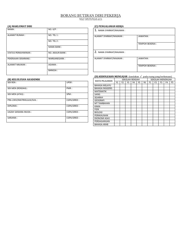 Related : Borang Maklumat Peribadi Pekerja / Semak maklumat yang dinyatakan dalam borang permohonan itu benar..