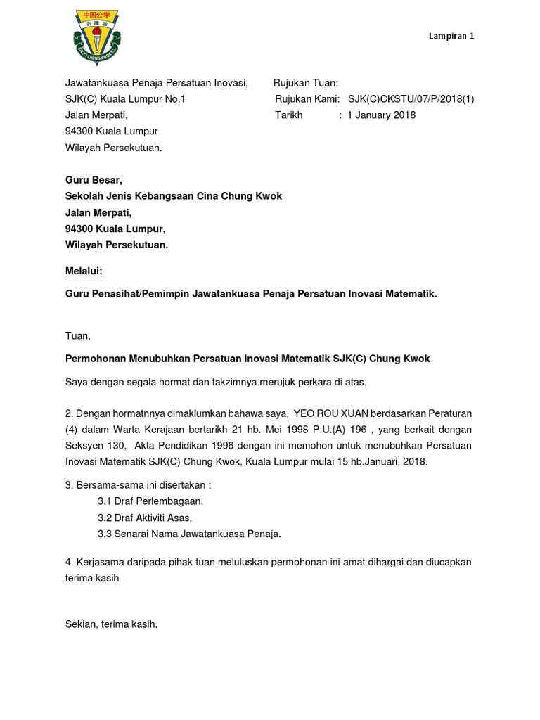 Surat Permohonan Penubuhan Persatuan - Surat yang resmi biasanya ditujukan kepada suatu instansi.. We are a sharing community. Surat permohonan penubuhan pasukan pakaian seragam. Surat permohonan biasanya dipakai oleh seseorang, organisasi, instansi, atau badan usaha untuk mengajukan suatu permohonan secara formal kepada pihak lain. Ja#ar$ ja#ar$ !015 pengetua% smk baru bintulu peti surat 1547 jalan kemunting kemunting 97010 bintulu% sara&ak puan% permohonan penubuhan persatuan. Ada banyak surat permohonan yang beredar di dunia ini.